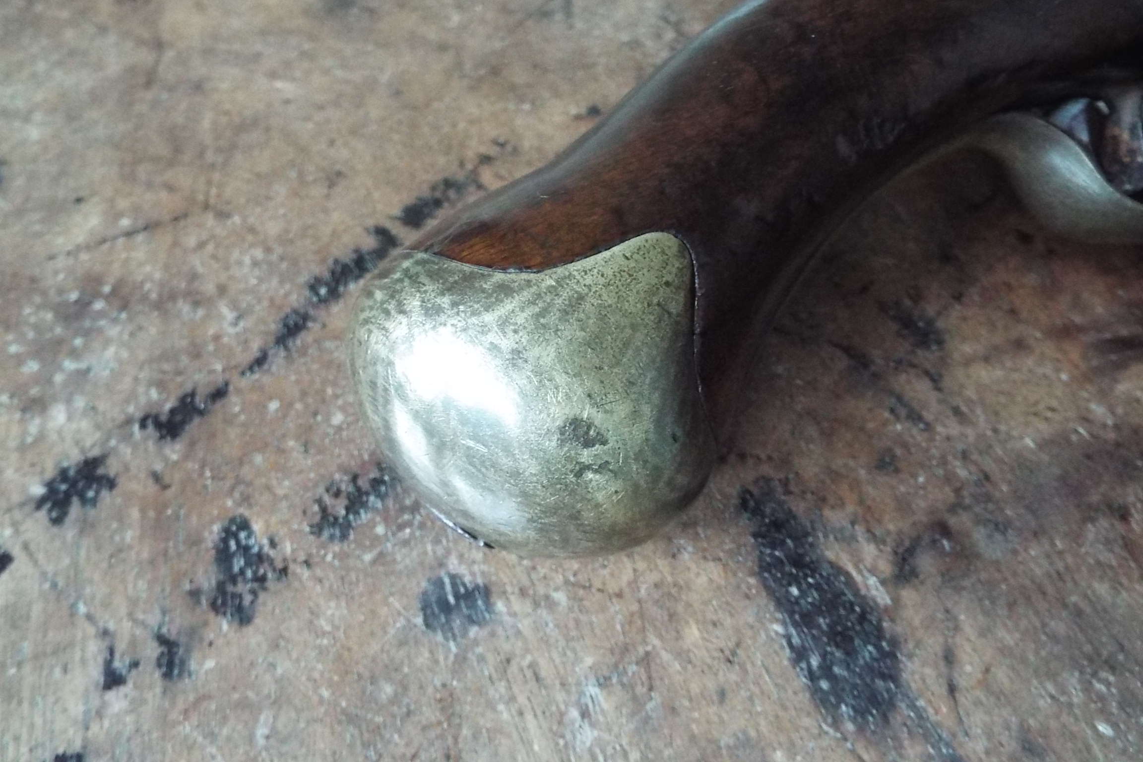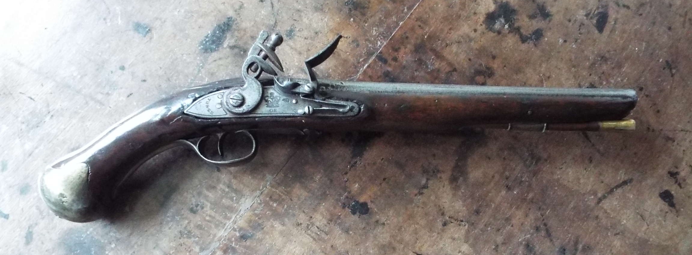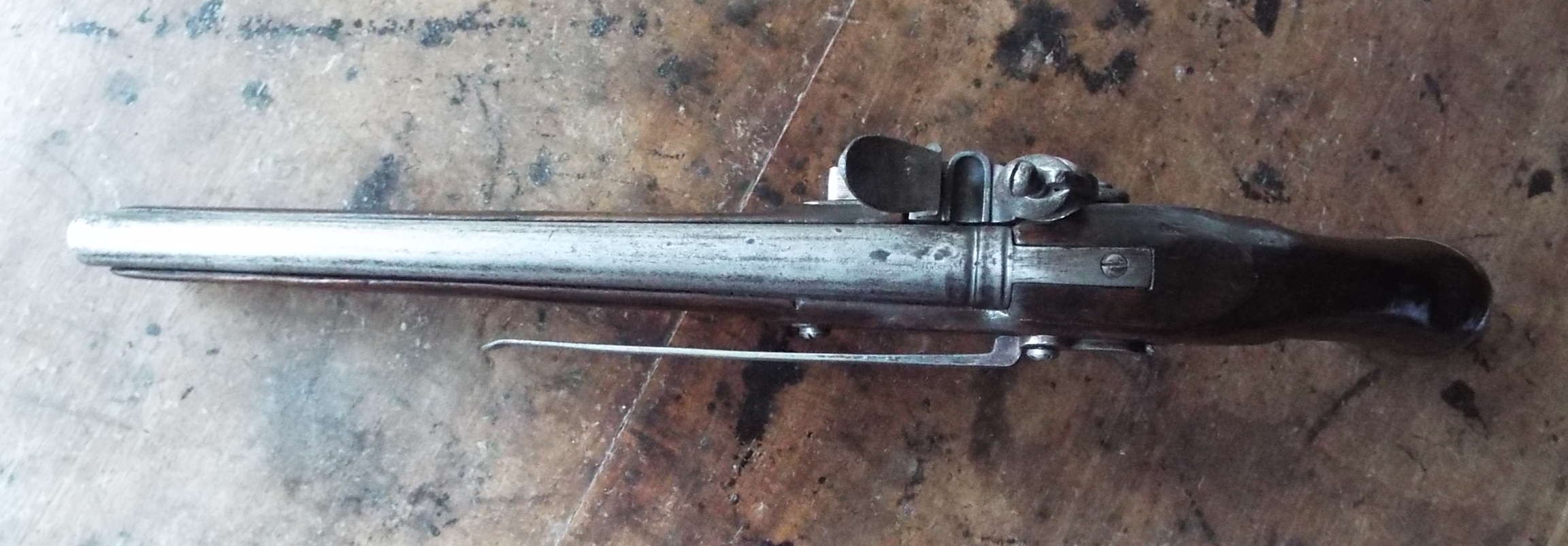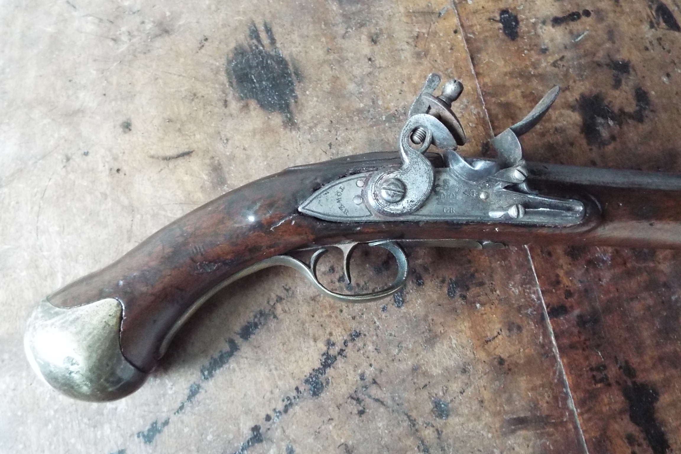 A good example of an 1801 pattern British naval Long Sea Service pistol. Full walnut stock with regulation brass mounts and steel belt hook, 19 inches overall with a 12 inch, .6 calibre barrel. The lock stamped with Tower to the tail and The Crown and GR. Full working order.