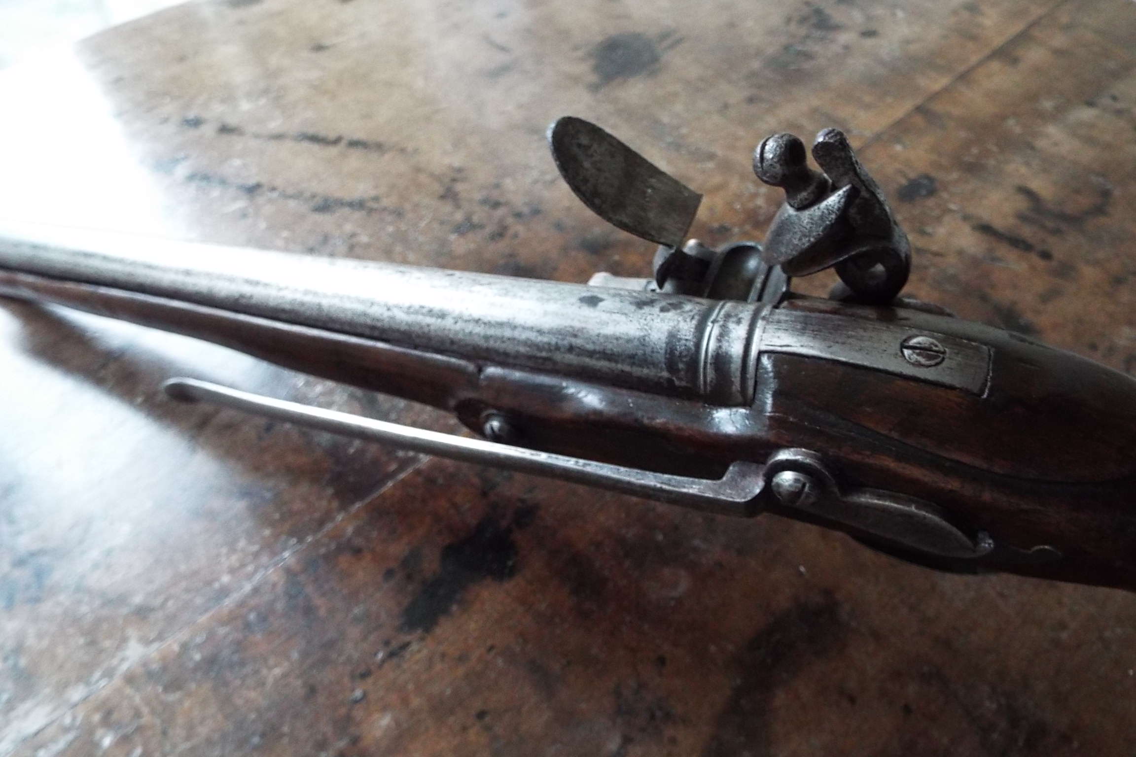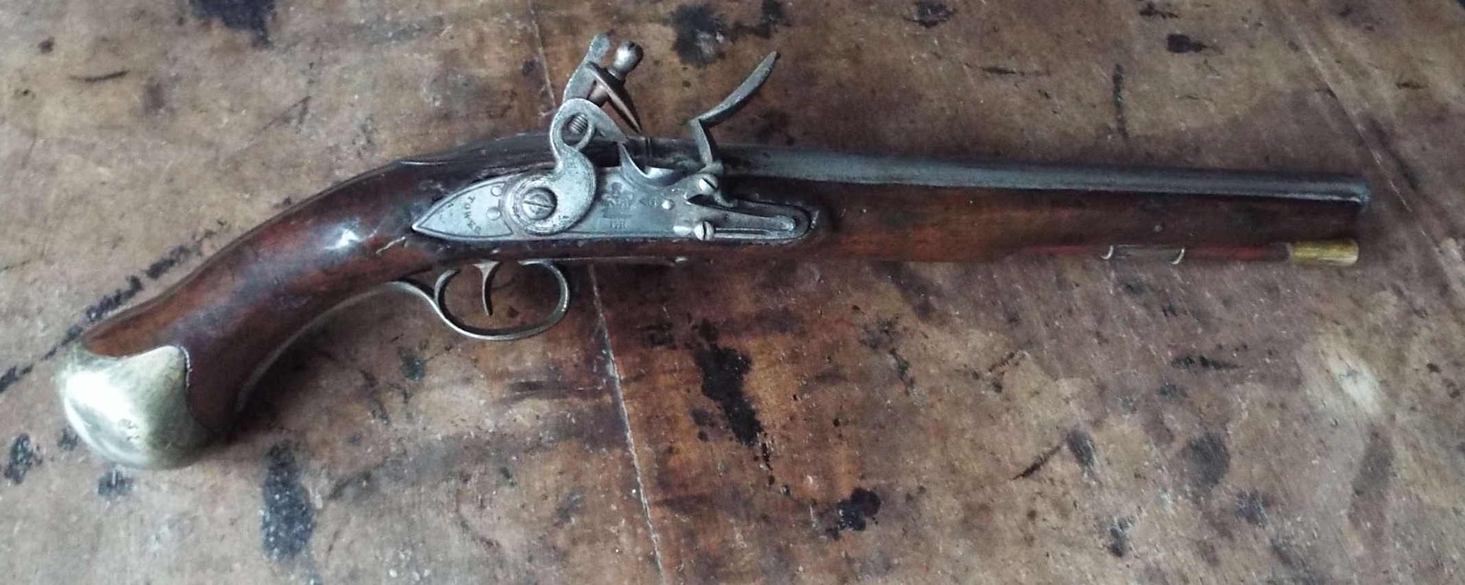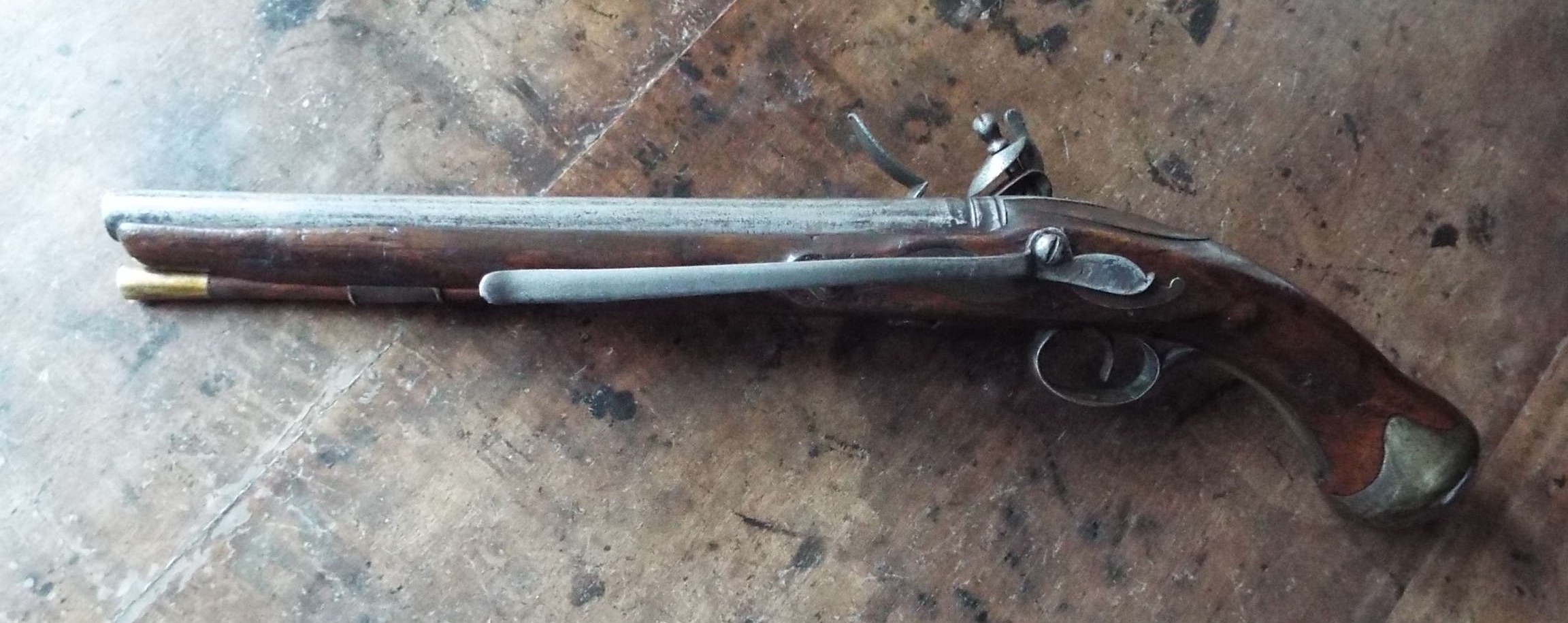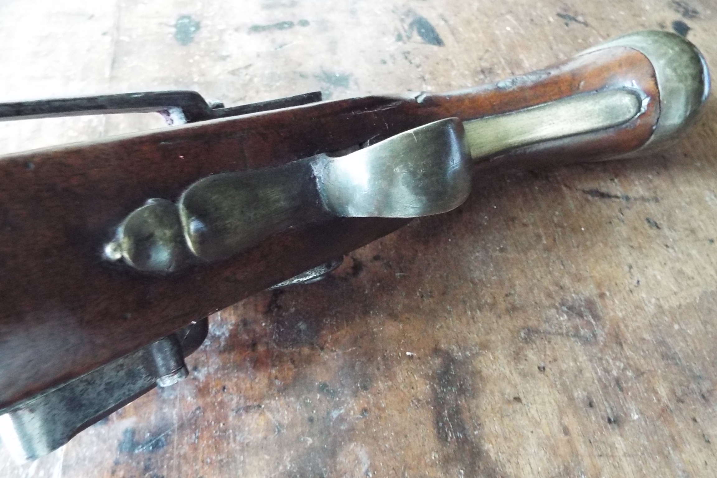A good example of an 1801 pattern British naval Long Sea Service pistol. Full walnut stock with regulation brass mounts and steel belt hook, 19 inches overall with a 12 inch, .6 calibre barrel. The lock stamped with Tower to the tail and The Crown and GR. Full working order.